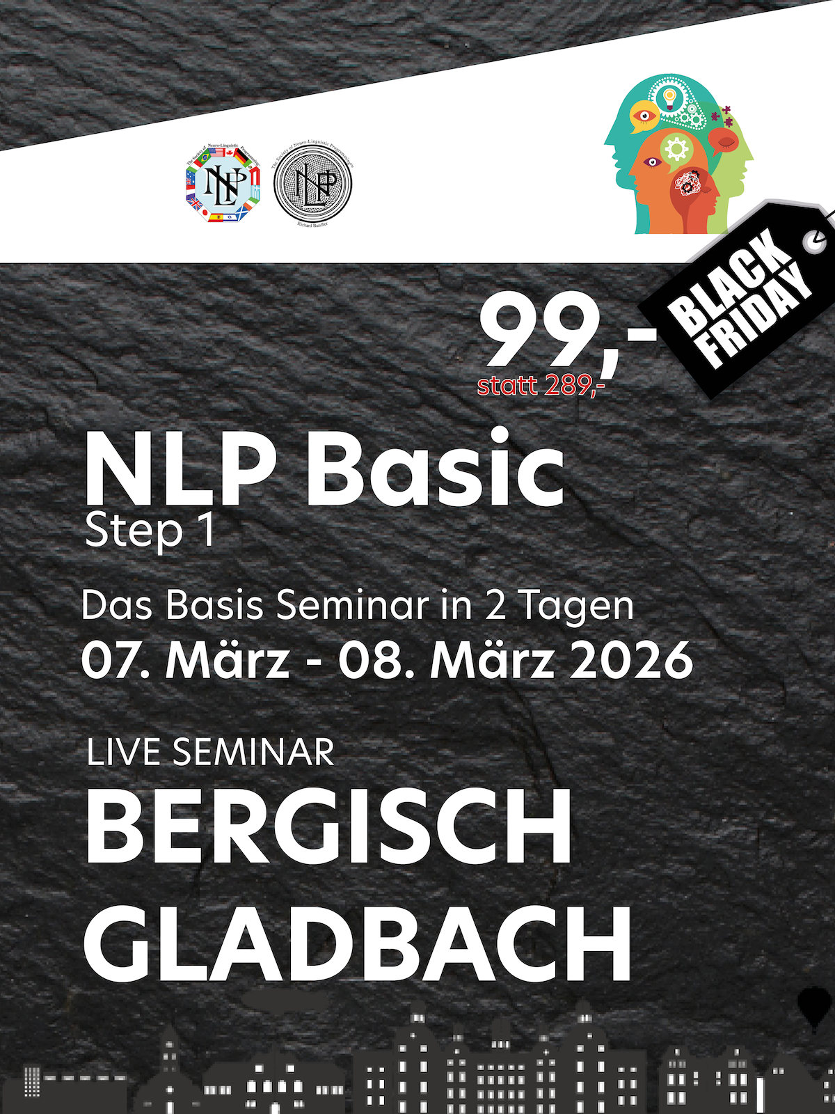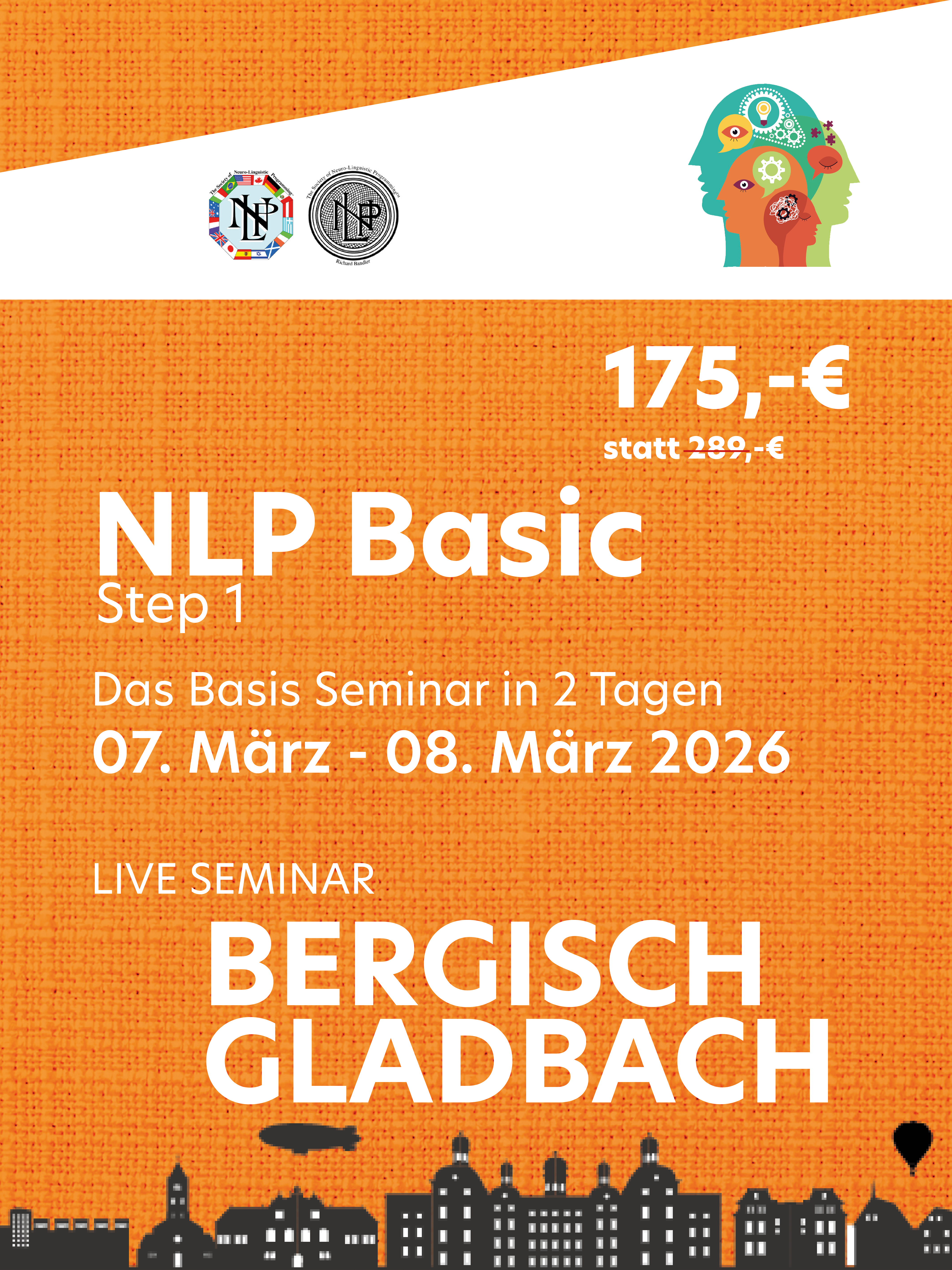Du bekommst, als Teilnehmer des NLP Basic Step 1 Seminars, 175,00€ auf die international lizensierte NLP Practitioner Ausbildung am 29.04.2027 - 07.05.2027 in Bergisch Gladbach, angerechnet. Für den Fall, dass du dich nach dem Step 1 NLP Basic Seminar für die international lizensierte NLP Practitioner Ausbildung bei FOCUS Bewusst(sein) entscheidest, findest du alle Angaben auf meiner unter :