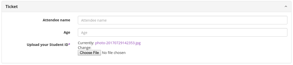 You can now define questions that ask the user to upload a file. This can be very useful to implement something like checking Student IDs for reduced tickets or requiring pictures of your attendees to print badges. But we are sure that you will find even more uses for this that we could think of right now!