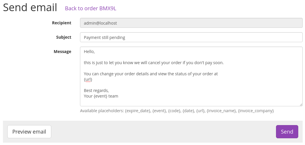In addition to sending out mass emails to all participants, you can now send emails to individual customers directly from the pretix backend interface. A new email history view shows you all emails that have ever been sent through the system to a specific customer – no matter if they have been sent individually, collectively or automatically.