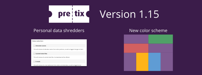 Today, we are releasing the next monthly release of pretix. pretix 1.15 is exciting to us as it is our first release that significantly changes the looks of pretix for a long time. But don't worry, we also put in a number of great features! Big thanks go out to Claude, Felix Rindt, Jan Felix Wiebe, Jakob Schnell, Maarten van den Berg, Maarten Visscher, Mikkel Ricky, N Eliseo S Carranza, Pieter Roziers, Tobias Kunze, and Ture Gjørup, who contributed to this release. ❤️