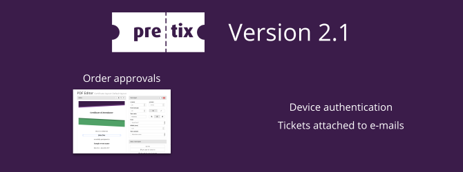 Today, we are releasing the next monthly release of pretix. pretix 2.1 includes a new method to connect devices to the API, as well as a new pretix Hosted/Enterprise plugin to generate certificates of attendance. Big thanks go out to Christian Kohlstedde, Felix Schäfer, Maarten van den Berg, oocf, and Yunus Fırat Pişkin, who contributed to this release. ❤️