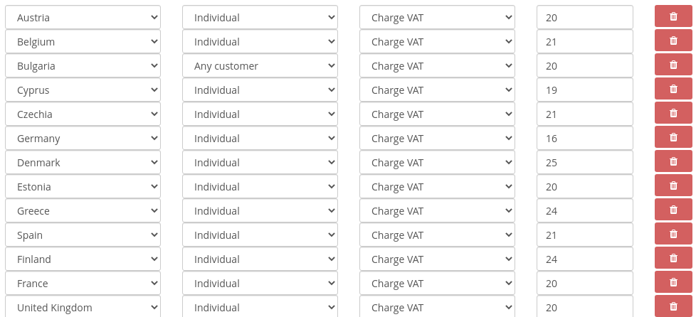 pretix now allows to assign different VAT rates depending on the country the customer is from. Previously, it was only possible to turn taxation on or off entirely based on the country. While this isn't needed for events in most countries, it is needed for online events targeting consumers in the EU, or for shipping goods across EU borders.