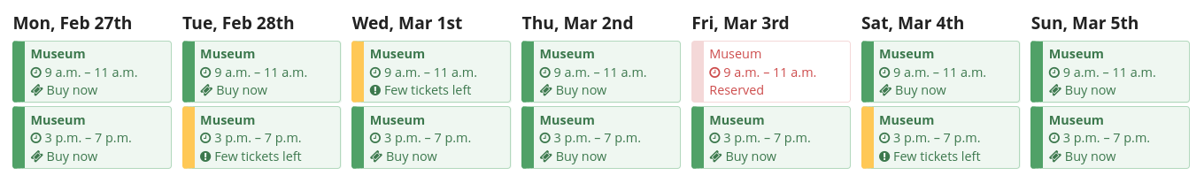 We have introduced a new, much-requested option for our event calendar and event list that allows you to highlight events or time slots that will run out of tickets soon. This gives your users additional information to motivate a quick purchase.