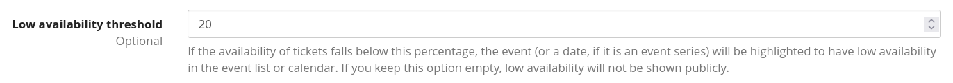 The threshold for when to consider availability low (e.g. 20 %) can be configured in the event display settings: