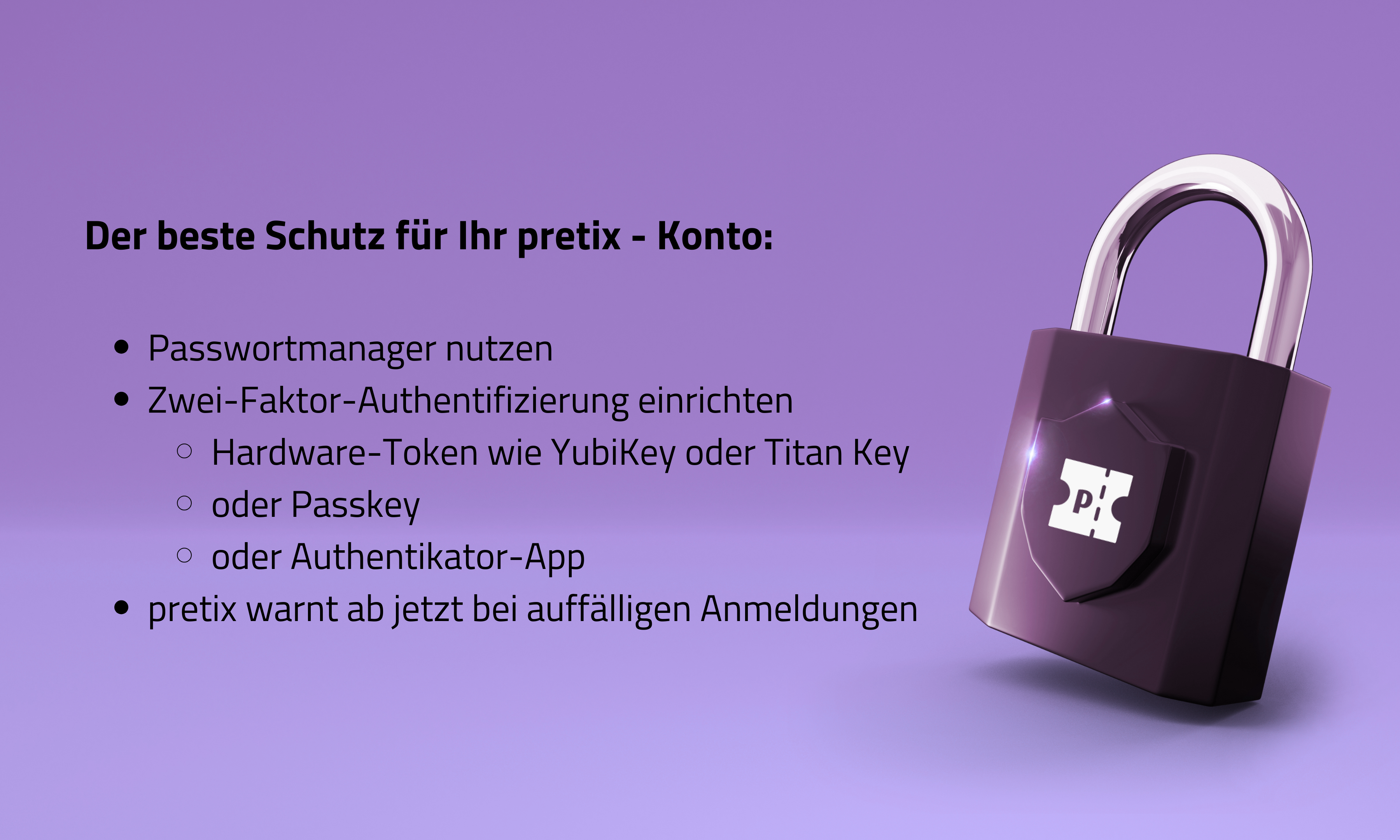 Als beste Maßnahme zur Absicherung Ihrer Login-Daten möchten wir Ihnen die Verwendung eines Passwortmanagers ans Herz legen: Dieser unterstützt Sie beim Anlegen neuer Benutzer*innen-Konten für Webseiten, indem Ihnen starke, individuelle Passwörter vorgeschlagen und für diese Seite abgespeichert werden. Wenn Sie sich erneut einloggen möchten, werden diese Daten wieder abgerufen und in das entsprechende Login-Feld automatisch eingetragen. Hierbei tritt ein weiterer, die Sicherheit wesentlich erhöhender Effekt ein: Der Passwortmanager schlägt nämlich nur eine Benutzer*innen-Namen/Passwort-Kombination vor, wenn die momentan aufgerufene Webadresse mit einer abgespeicherten Webadresse übereinstimmt. Dazu ein Beispiel: Für www.pretix.eu bekämen Sie keinen Vorschlag Ihres Passwortmanagers für Ihr pretix-Konto präsentiert, weil der Passwortmanager dieses mit unserer Website www.pretix.eu verknüpft hat und nur für diese Webadresse freigibt. Auf diese Weise können Sie nicht auf Phishing-Versuche hereinfallen, die (leicht) veränderte und damit leicht zu übersehende Webadressen verwenden.