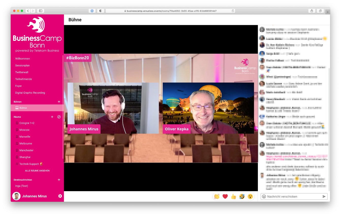 Eva: Ihr arbeitet mit unserer DSGVO-konformen Eventplattform Venueless. Wo sind für euch da die Vorteile, die andere Plattformen vielleicht nicht haben?