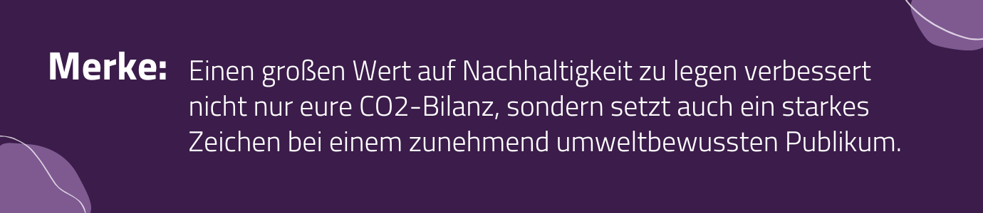 Nachhaltigkeit ist längst nicht mehr nur ein nice-to-have, sondern ein entscheidender Faktor für den Erfolg von Messen. Veranstaltende stehen vor der Herausforderung, ihre Events so umweltfreundlich wie möglich zu gestalten. Vor allem im international geprägten Messeumfeld mit beeindruckend gestalteten Ständen ist das keine leichte Aufgabe. Aber keine Sorge, es gibt genügend Schrauben an denen gedreht werden kann. Das Angebot digitaler Tickets, der Einsatz erneuerbarer Energieträger, die Förderung umweltfreundlicherer Transportmittel, die Reduktion von Abfällen (vor allem im Standbau) sind nur einige Beispiele. Wie ihr mit nachhaltigen Events punkten könnt, zeigen wir euch ausführlich in einem anderen Artikel.