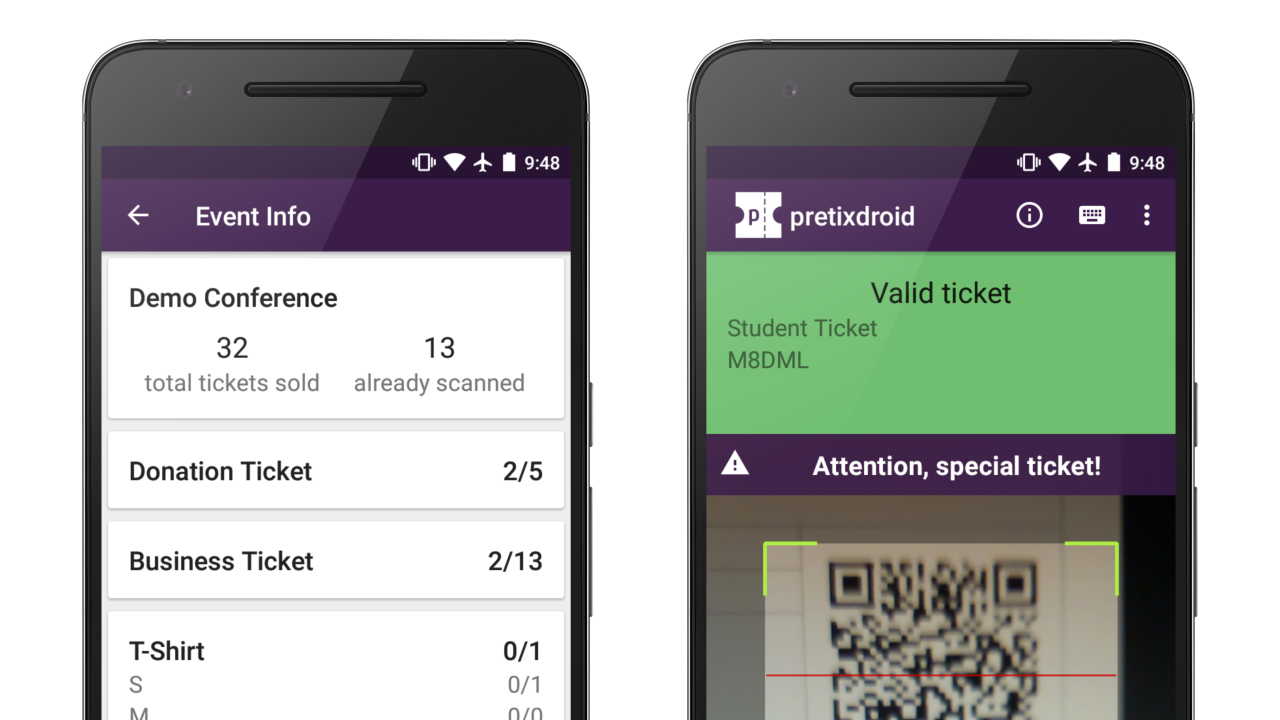 Our ticket scanning app pretixdroid is now available in version 1.6 on the Google Play Store and on GitHub. It has been updated with a number of exciting features: