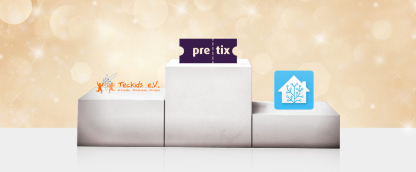 We want to express our congratulations to all the other projects awarded together with us: The second prize was awarded to Teckids e.V., a non-profit organization supporting use of open source software in education and youth projects. The third prize was awarded to Home Assistant, an open source toolkit for home automation systems. Unfortunately, we weren't able to attend the ceremony ourselves.