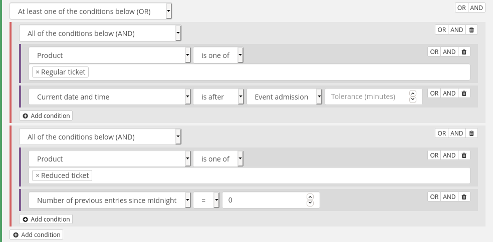 Second, we've added a new way to configure pretix to support even the most complex access control rules. Our new rules engine allows you to program your own check-in situations in case pretix' settings aren't enough for you.