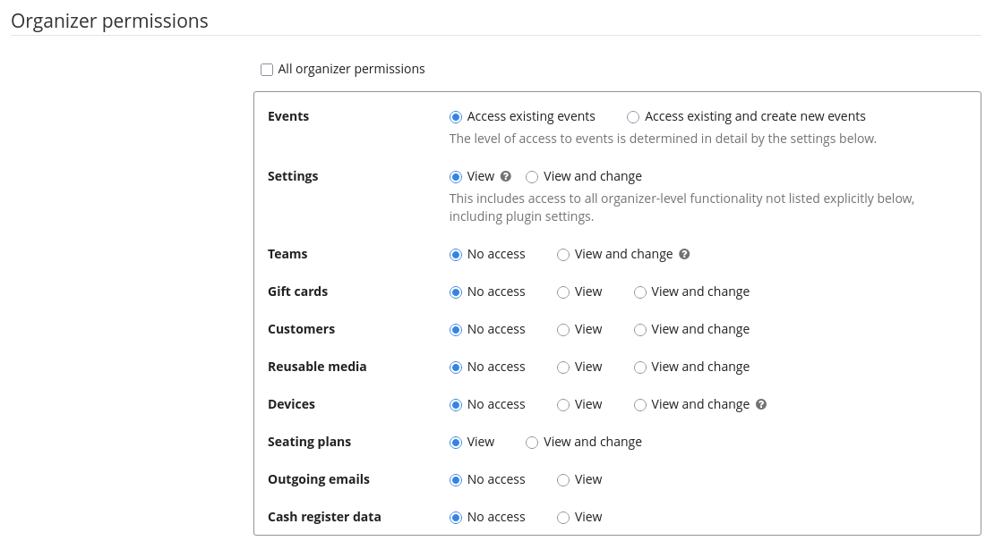 Additional permissions have been added where we've seen most customer demand, such as more permission specific levels on organizer level, specific permissions for payment, taxation and invoicing settings.