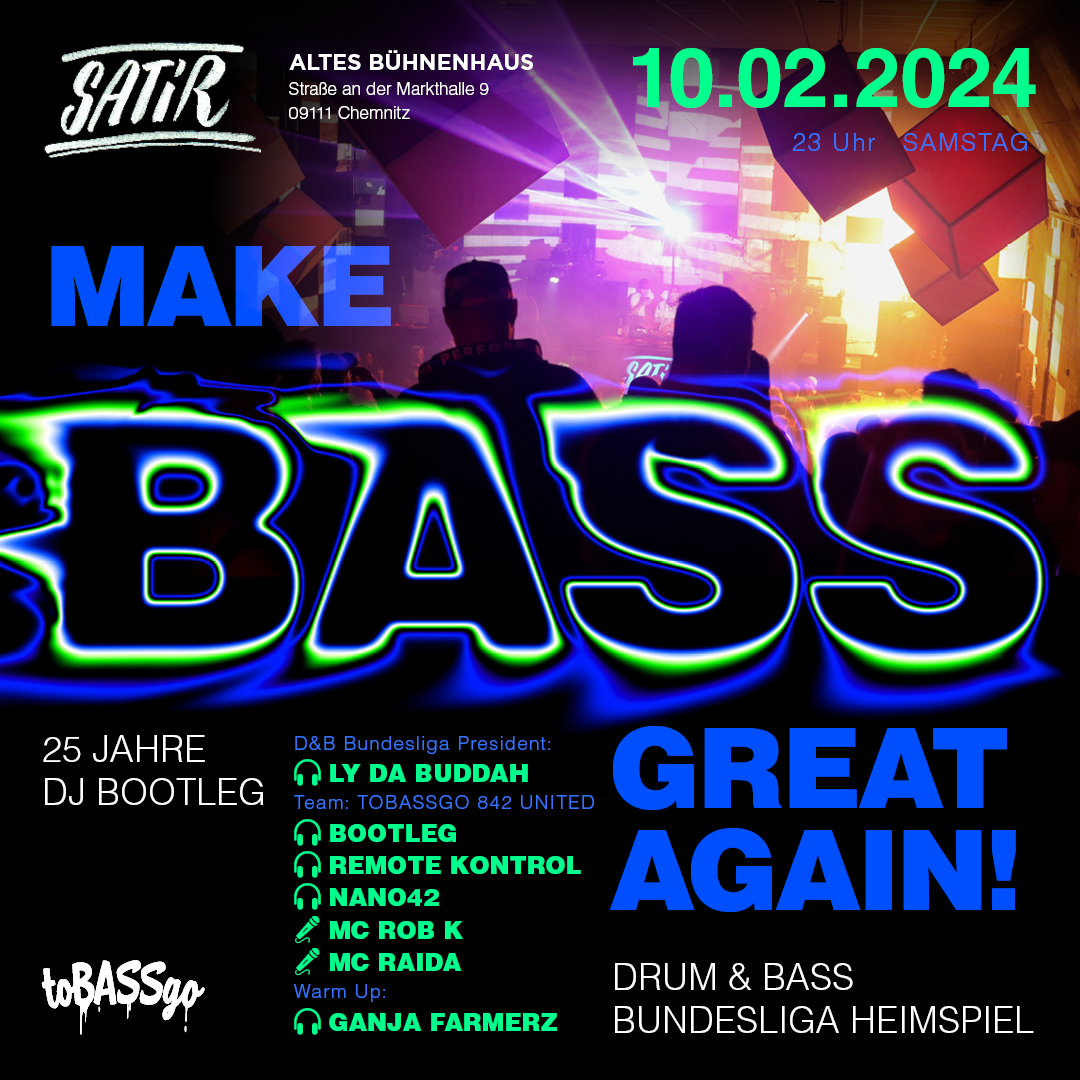 Auch dieses jahr geht es wieder um den Pokal! Das Heimspiel wird wie im letzten jahr im Satir ausgetragen, Deinem Lieblingsclub für D&B! Außerdem gibts auch noch guten Grund zu feiern. DJ Bootleg jubiliert zum 25jährigen! Und natürlich ein brechend volles Line Up! Viel zu geil für eine Nacht. Liebe\ satir