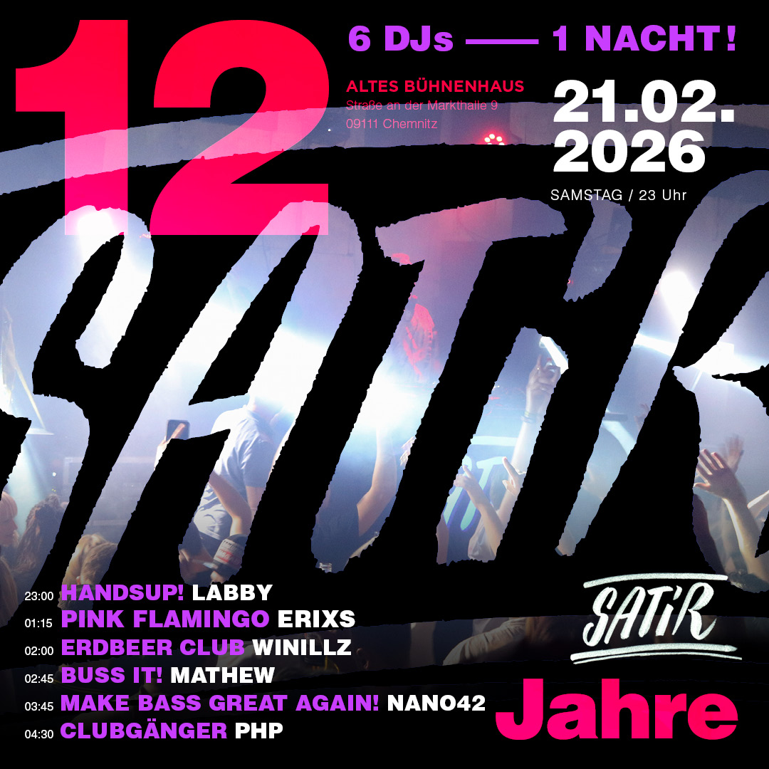 wie feiert man am besten den eigenen Geburtstag? Wir laden unsere besten Freunde ein. Dazu gehören: HandsUp, PinkFlamingo, ErdbeerClub, BussIt!, MakeBassGreatAgain und Clubgänger. Dazu kommen noch die Satir Staff Crew, die Satir DJ Crew und last but not least die beste Partycrowd der Stadt. Zusammen feiern wir eine Nacht lang unsere besten sechs satir Klassiker, also nacheinander sechs Partys in einer Nacht! Das wird einfach zu wild!