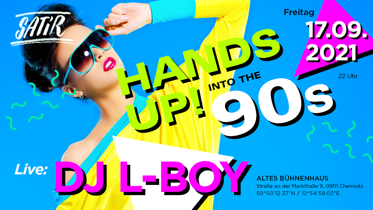 Hurray Ya! Wir starten mit Hands Up eine besondere Party im Satir. DJ L-Boy hat die Mission, Eure Arme im Club senkrecht anzuordnen. Hands Up, baby!
