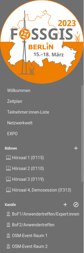 Zur Auswahl stehen Räume für Bof/Anwendertreffen/Expert:innenfragestunde und OSM-Event.