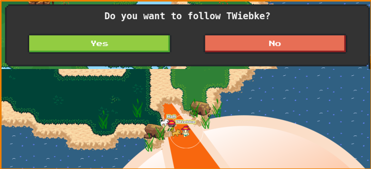 Diese Meldung ploppt bei den Teilnehmenden des Videochats auf. Wenn Sie "Yes" drücken, folgen Sie der entsprechenden Person.