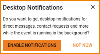 Wir empfehlen Ihnen dringend, Benachrichtigungen auf Ihrem Desktop zu aktivieren, um sicherzustellen, dass Sie nichts von der Veranstaltung verpassen, z. B. private Nachrichten und Übertragungen.