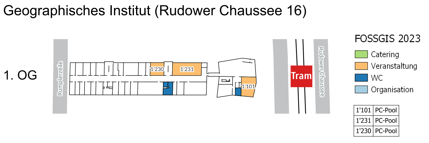 Die Workshops finden in den PC-Räumen des geographischen Institus in der Rudower Chaussee 16 statt. Jede:r Teilnehmende hat einen PC zur Verfügung.