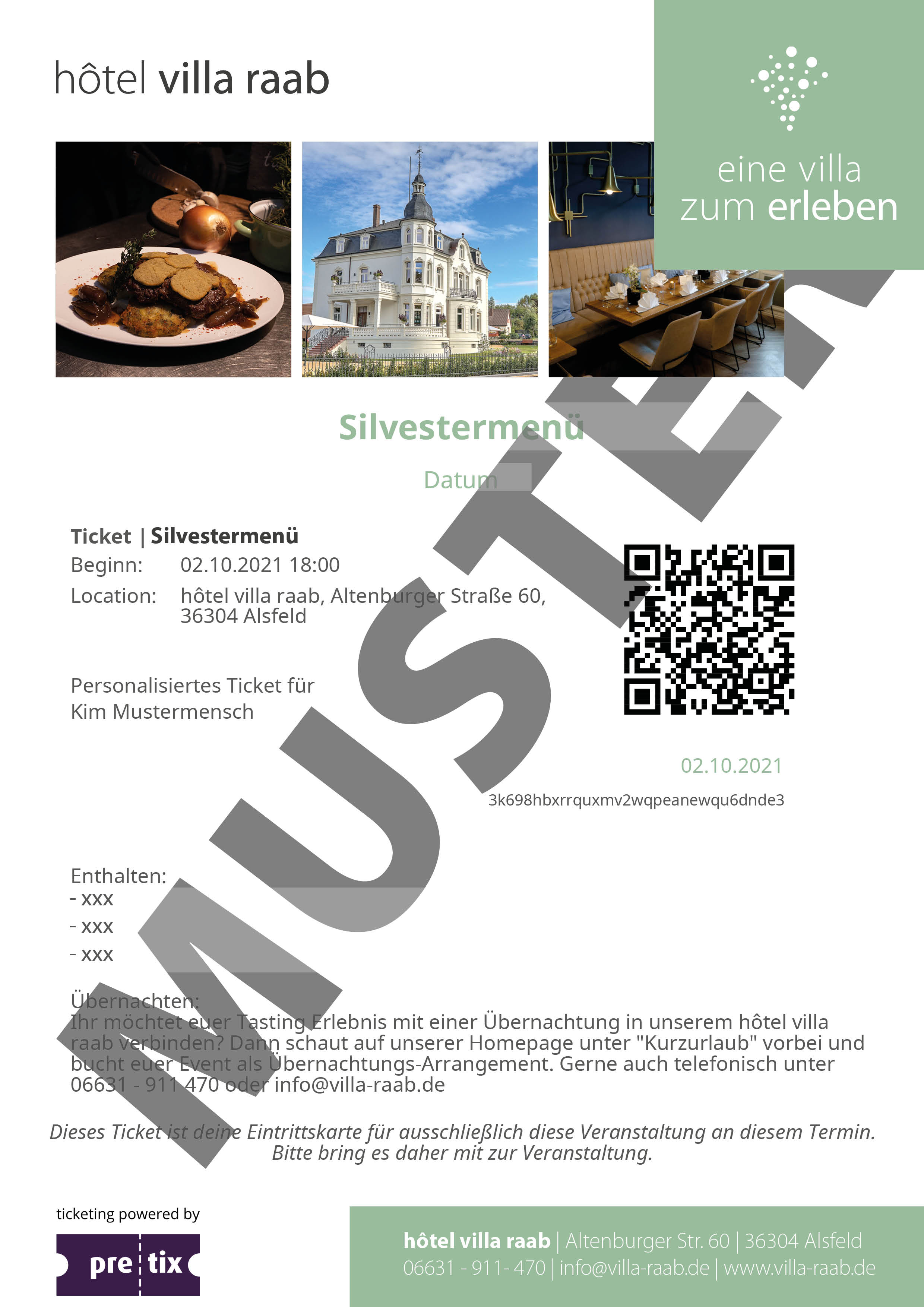Um 23 Uhr verabschiedet sich das Team von hôtel villa raab von euch und entlässt euch zu einer Neujahrsparty eurer Wahl.