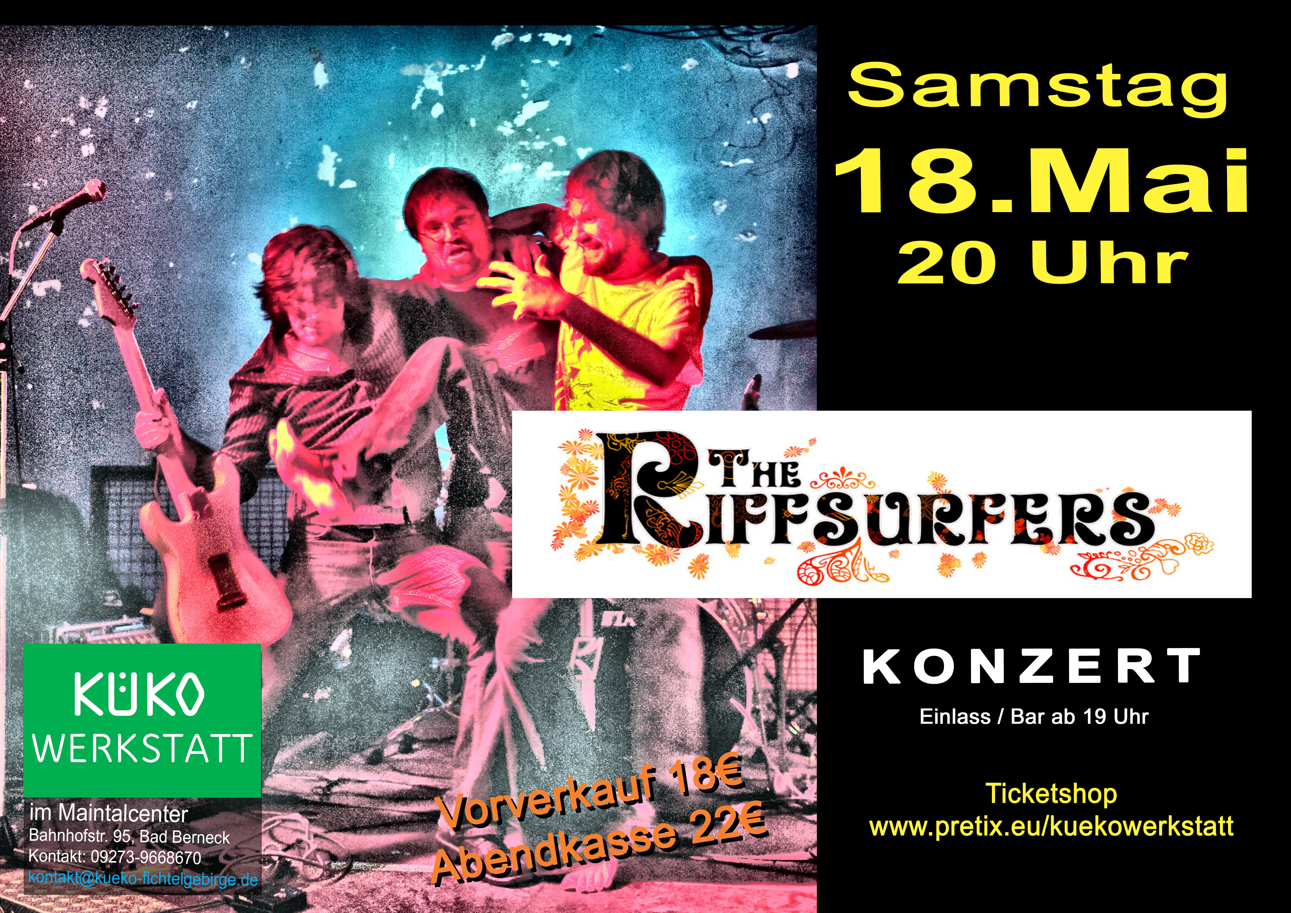 „Blues?? - Jazz?? - Funk?? - Kraut-Rock 2.0!!“ In ihrer eigenen ausgeklügelten Kombination musikalischer Genres lassen es die RIFFSURFERS in klassischer Power-Trio Besetzung bei jedem ihrer Konzerte auf höchstem musikalischem Niveau krachen. Sie stellen außerdem unter Beweis, dass ehrliche Musik/Texte und authentisches Auftreten alles sind, was man zum Feiern eines gelungenen Abends benötigt. Wer schon einmal das Vergnügen hatte eine Live-Performance der drei Kronacher zu genießen, der weiß genau wovon hier die Rede ist.