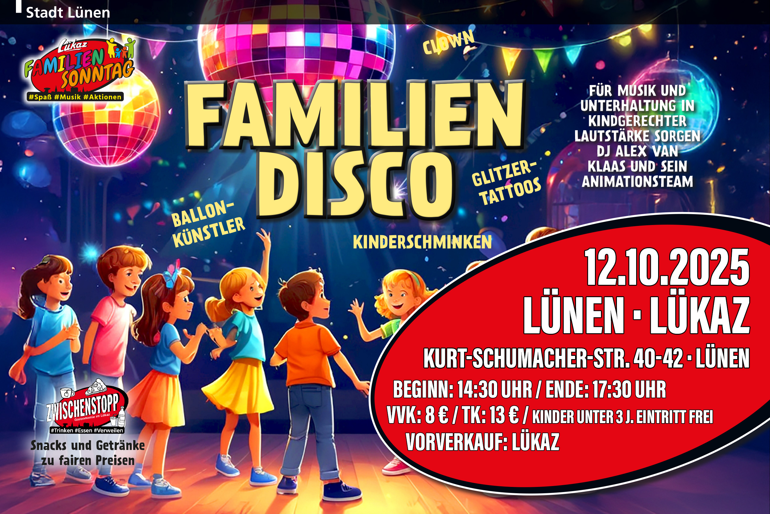 Lust auf einen unvergesslichen Nachmittag voller Spaß und Action für die ganze Familie? Dann kommt zu unser Familiendisco ins Lükaz! 🪩