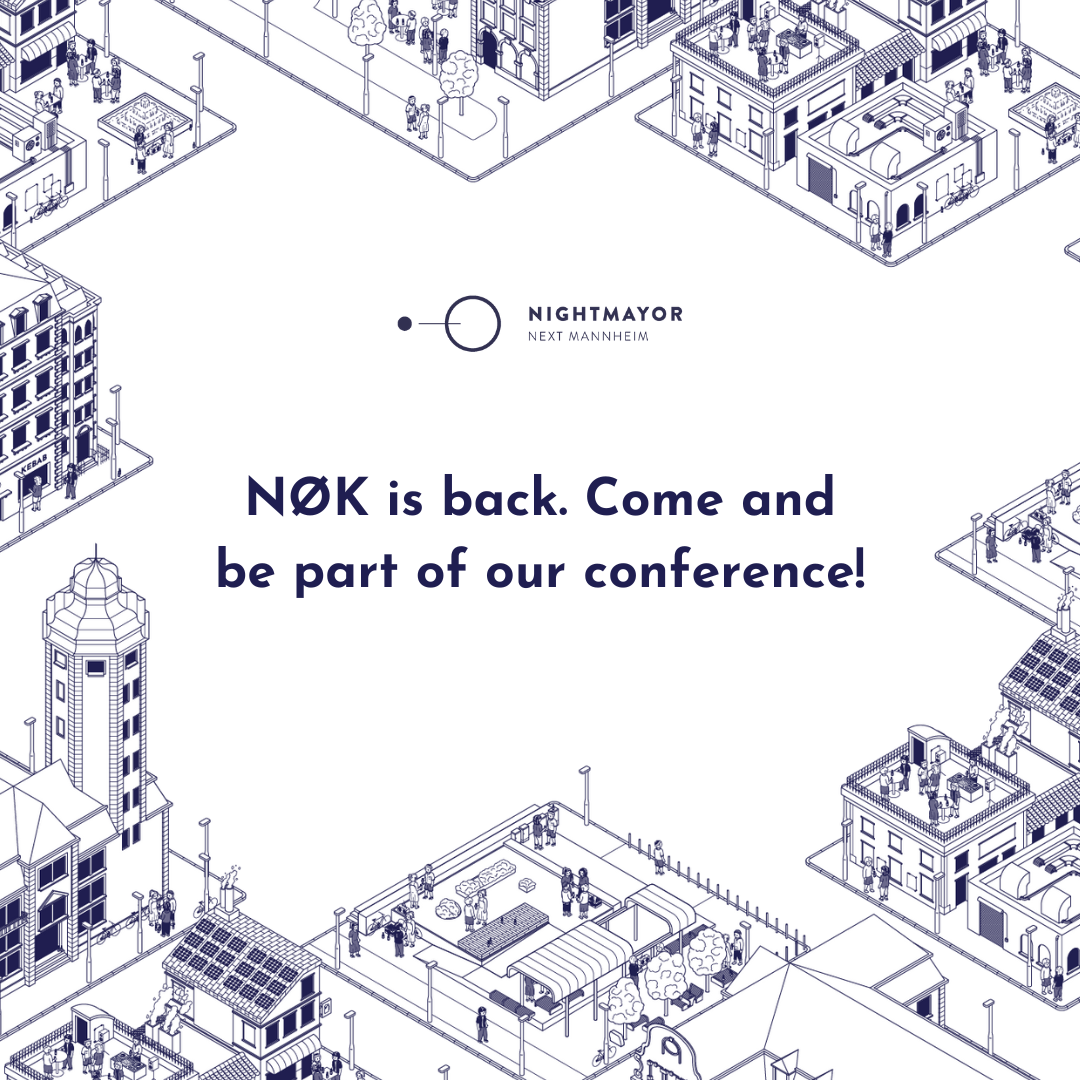 Bei Impulsvorträgen, Gesprächsrunden und Workshops diskutieren Akteurinnen der Stadtgesellschaft, Politik, Stadtplanung, Live- und Clubkultur und mehr, aktuelle Chancen und Herausforderungen der Szene, die sich mit steigendem Selbstbewusstsein aus dem „Schattendasein“ der Kulturbranche herausarbeitet. In der Förderung der Nachtkultur liegt nämlich großes Potential für eine resiliente Stadtentwicklung. In Mannheim hat man dieses Potential schon lange erkannt. Als erste deutsche Stadt schuf die UNESCO City of Music 2018 die Stelle des Night Mayors. Die Themenfelder, die der aktuelle Amtsträger Robert Gaa bearbeitet, sind so vielfältig wie das Nachtleben selbst. Er ist Diplomat, Impulsgeber und Aktivist, vermittelt zwischen Betreibenden, Bewohnerschaft, Verwaltung und Behörden. Ein enger Austausch mit anderen Expertinnen ist bei seiner Arbeit zentral. Aus dem Wunsch aktuelle Fragen und Herausforderungen international zu diskutieren, ist 2019 die Idee der NØK entstanden, die seitdem alle zwei Jahre stattfindet.