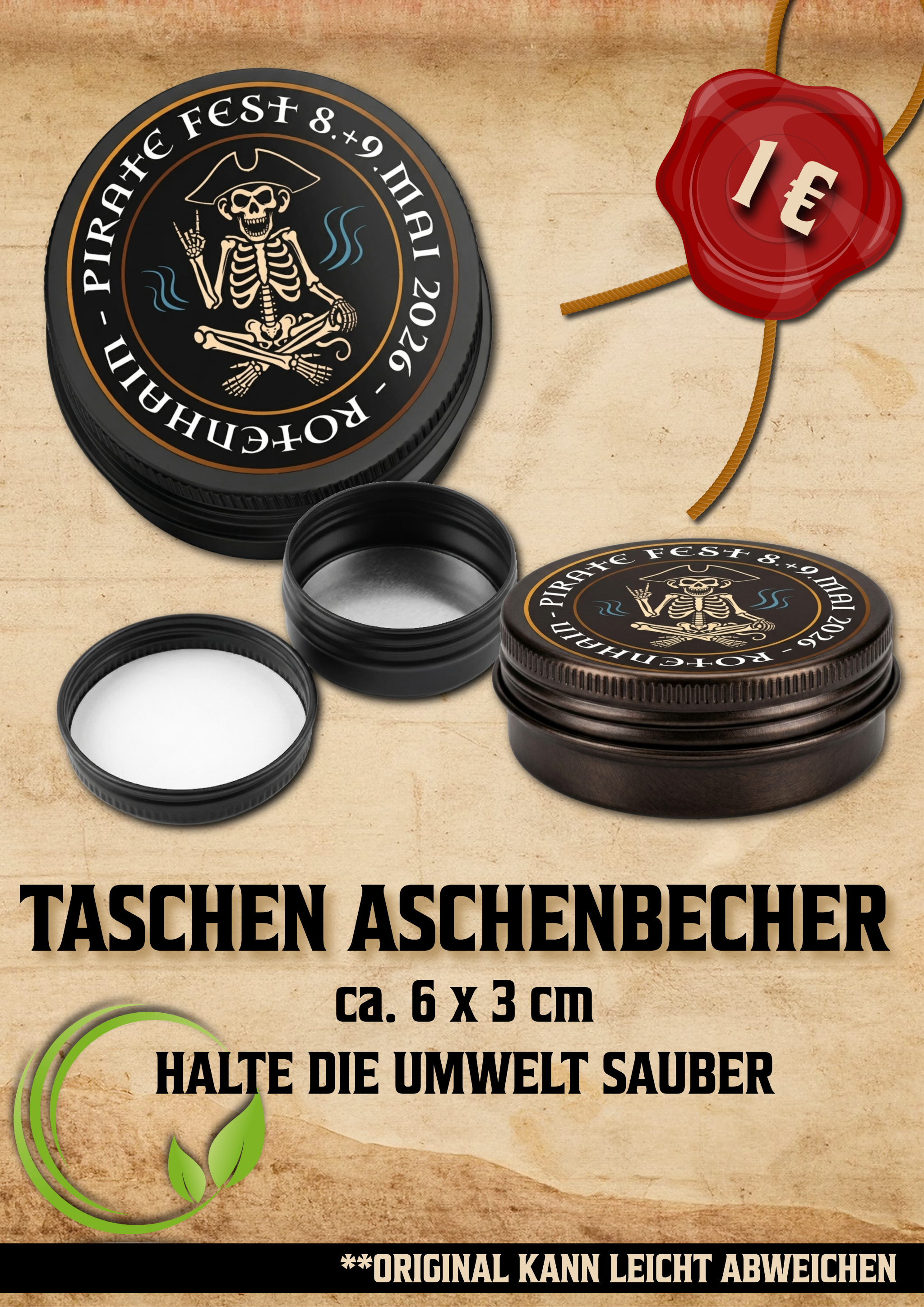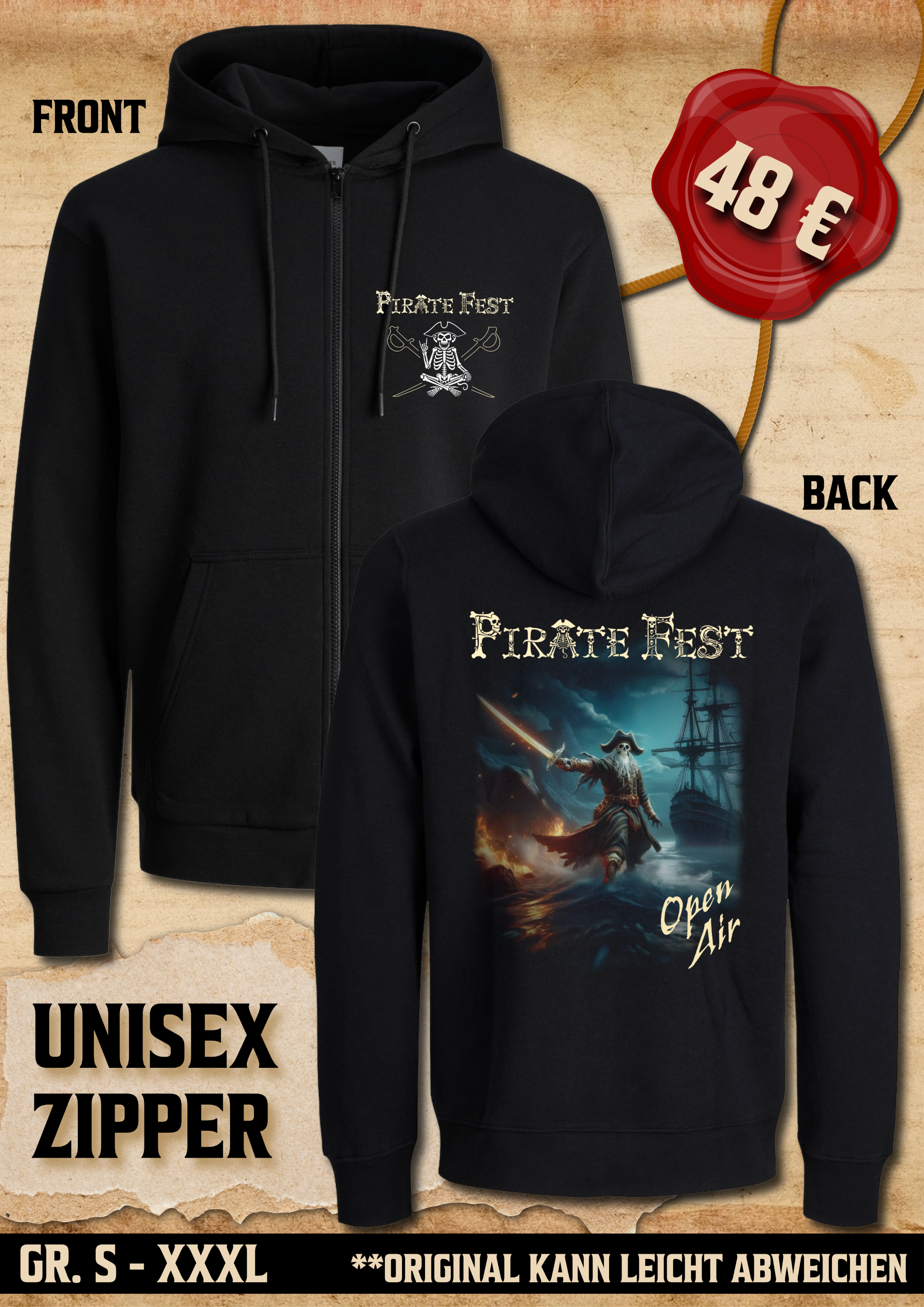 Ihr bestellt und bezahlt eure Ware im Voraus über unseren Shop und holt sie euch dann direkt vor Ort auf dem Pirate‑Fest am Merchstand ab – ganz ohne Gedränge, ganz wie echte Profipiraten!