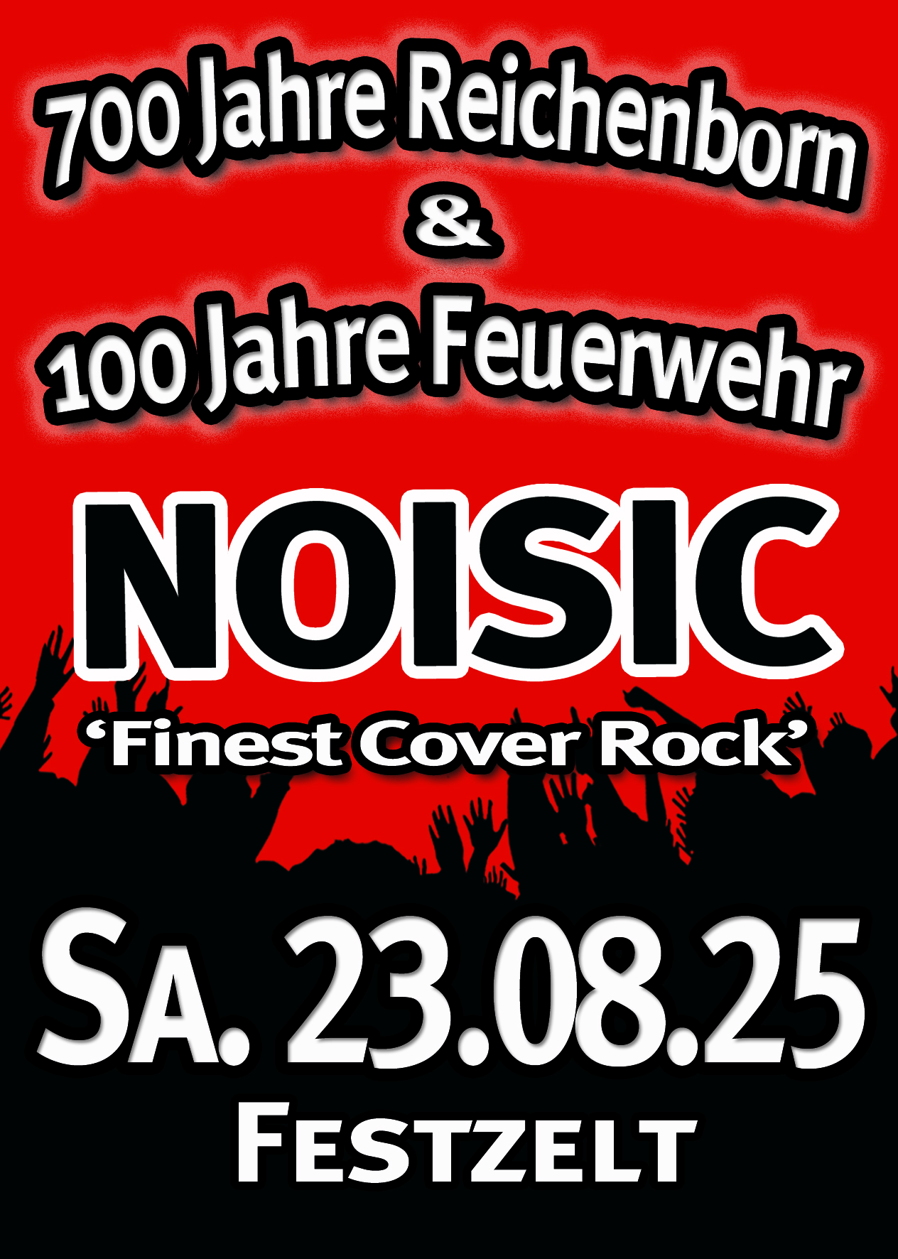 Die Band NOISIC sorgt am Samstag, dem 23. August 2025, mit einem abwechslungsreichen Programm für Stimmung und beste Unterhaltung im Festzelt in Reichenborn. NOISIC bietet eine Mischung aus aktuellen Chart-Hits, Rock-Klassikern und Party-Evergreens sowie eigens arrangierten Medleys, die zum Tanzen und Feiern anregen.